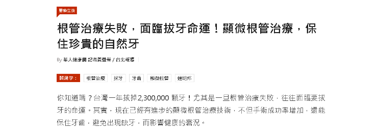 根管治療失敗,面臨拔牙命運!顯微根管治療,保住珍貴的自然牙