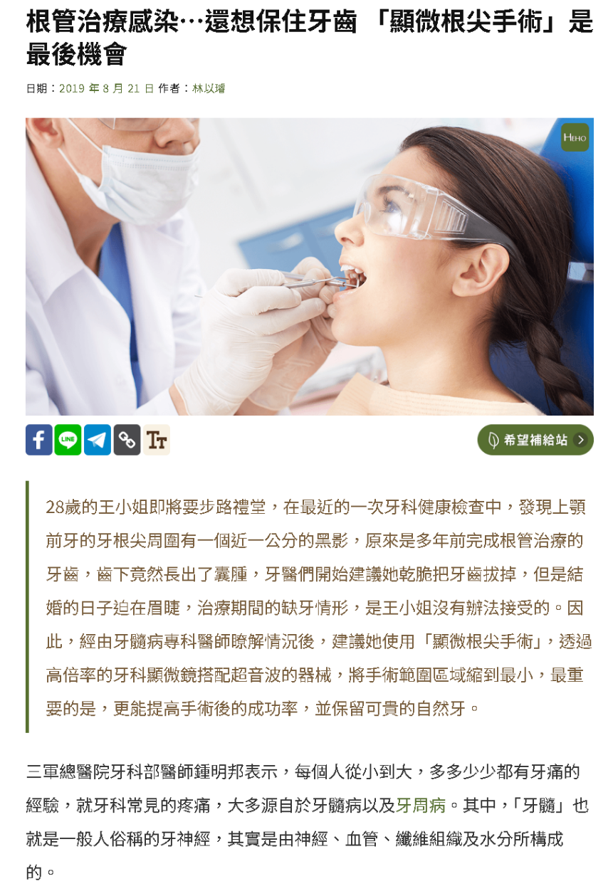 根管治療感染…還想保住牙齒 「顯微根尖手術」是最後機會